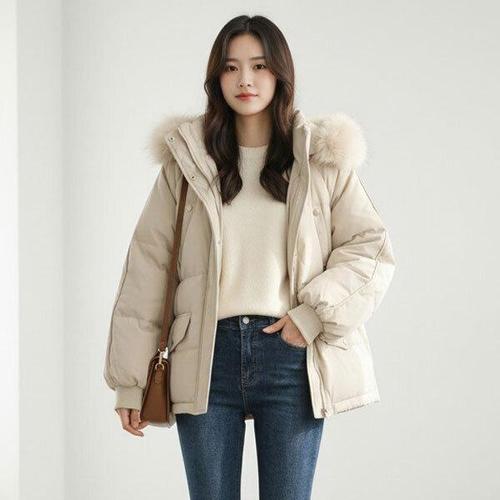 TEMU 여성용 가을/겨울 패션 심플 멀티핏 가벼운 커뮤터 후드 패딩 코트 (포켓 포함)
