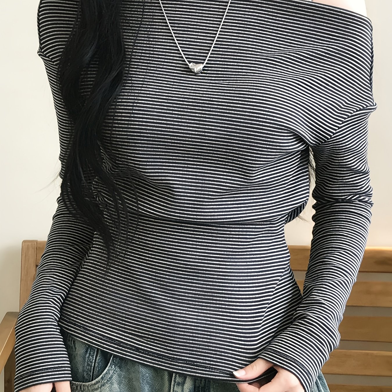 TEMU 가을 오프숄더 슬림핏 다용도 긴팔 티셔츠 여성용