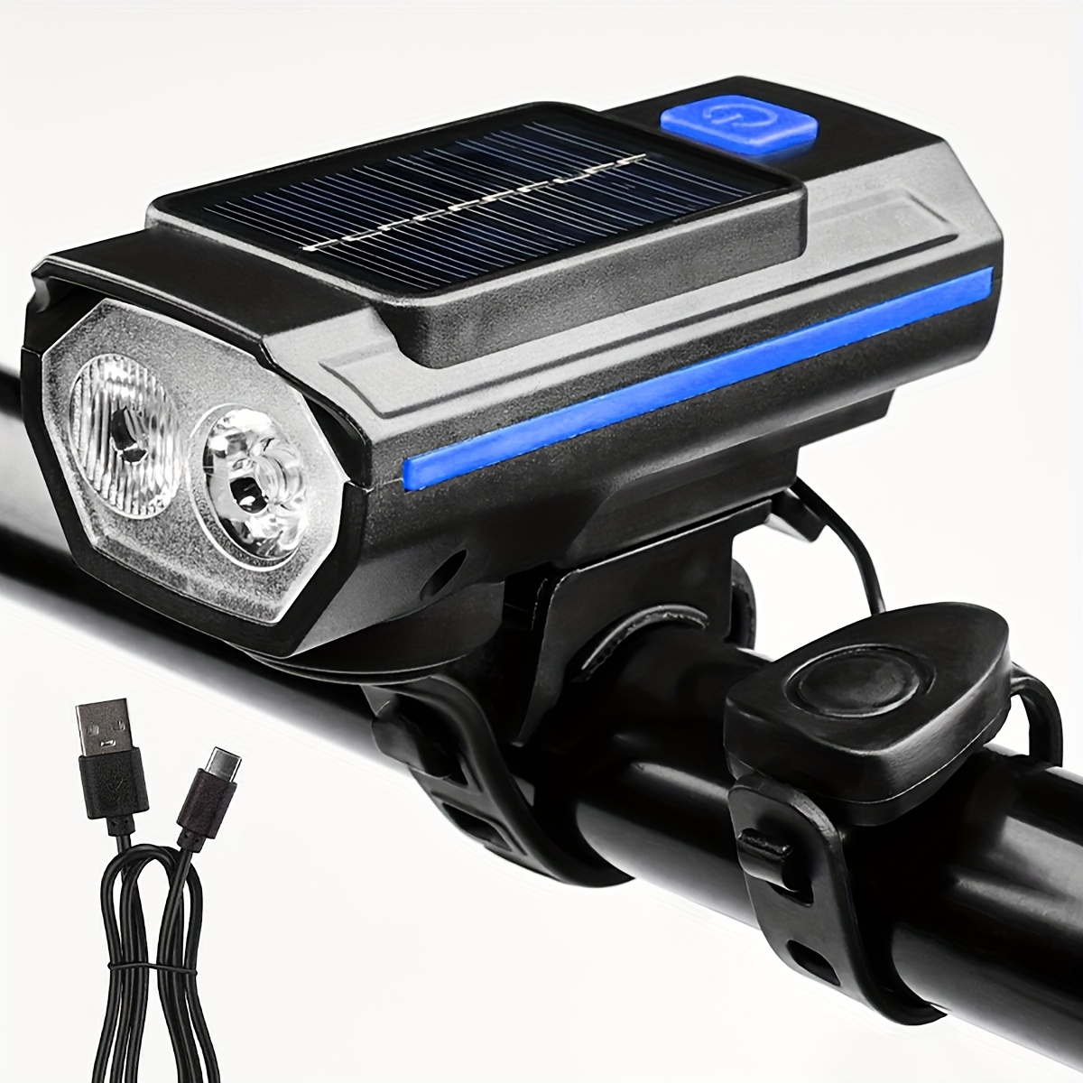 TEMU 자전거 전조등, 방수 태양광 헤드라이트, 듀얼 충전 모드, 고음량 경적, USB 휴대용 충전