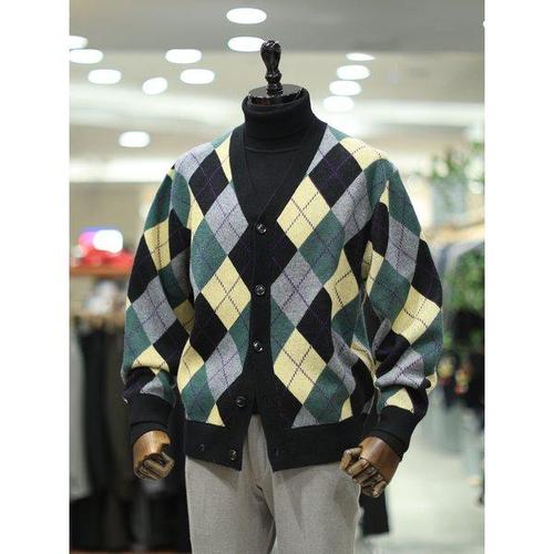 갤러리아_BON F/W 아가일 패턴 모혼방 버튼 가디건 BNEWSW871