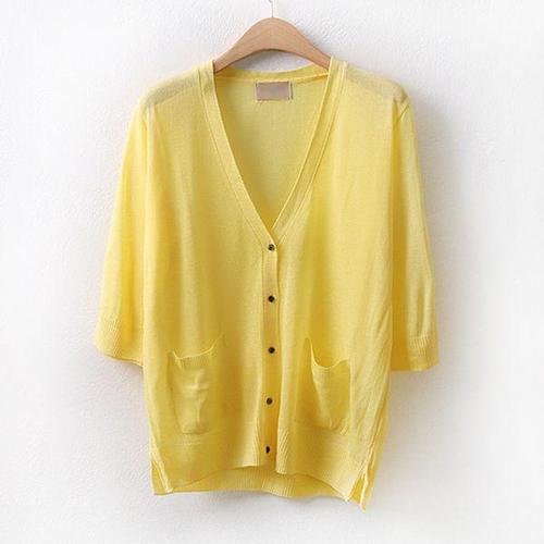 여성용 여름 빅사이즈 브이넥 루즈핏 니트 가디건