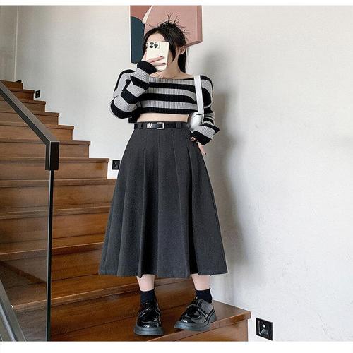 [드리다]봄 가을 클래식 플리츠 미디 롱 주름 벨트 셋트 치마 스커트 캐주얼 모임 출근