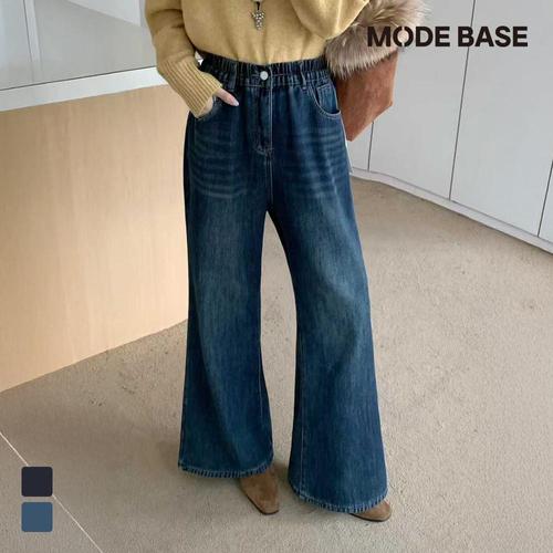 모드베이스 더즌 기모 데님 부츠컷 밴딩 팬츠 청바지