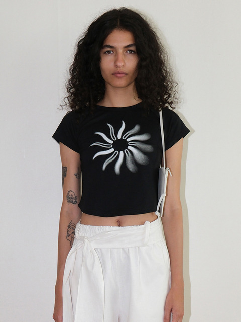 [이콤마이] SUN SYMBOL CROPPED T-SHIRT (BLACK)