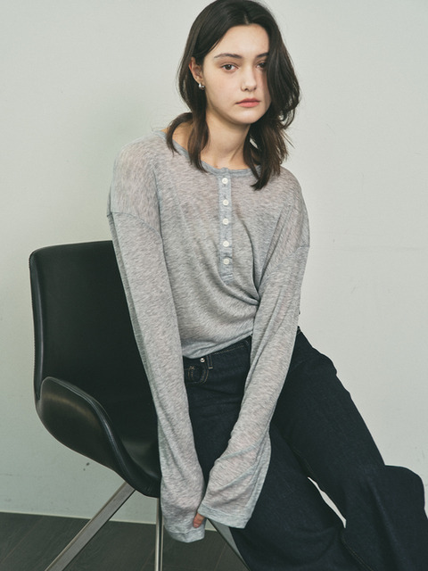 [로이로이] 루즈핏 텐셀 헨리넥 긴팔티-그레이