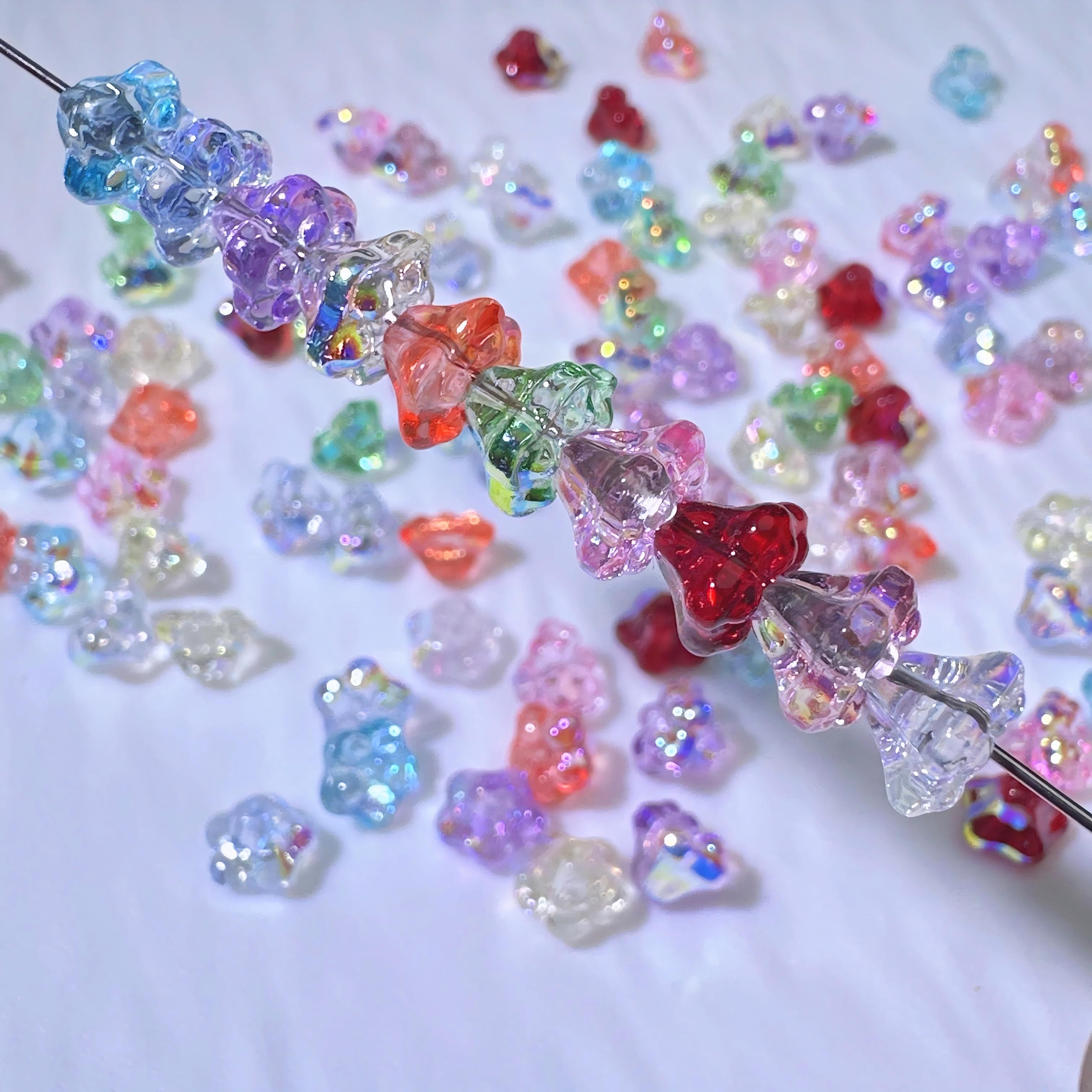 TEMU 48개 8.5X6.8mm/ 0.335X0.268인치 유리 나팔꽃 꽃 유리 구슬, 심플 패션 인스타 감성 색상 반짝이는 눈부신 꽃 모양 유리 구슬, 꽃 모양 펜던트, 귀걸이 펜던트, 팔찌 펜던트, DIY 팔찌, 귀걸이, 목걸이, 수공예용 나팔꽃 꽃 모양 유리 구슬