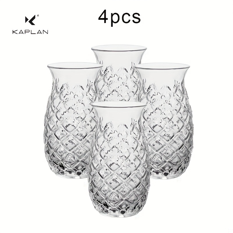 TEMU 카프란 브랜드 바 파인애플 유리컵 4개입, 480ml/16.2oz (빨대 제외), 주스, 우유, 커피, 알코올 음료 등에 적합, 크리스마스, 할로윈, 추수감사절, 가족 모임 및 파티에 완벽