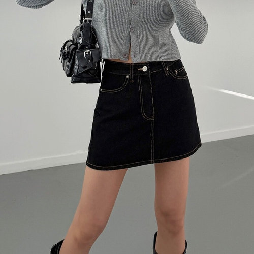여성 워싱 블랙진 미니스커트 가을용 청치마