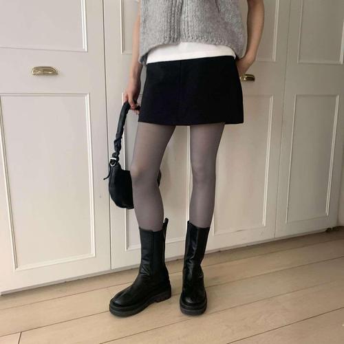 가비진 여성용 도톰 포근 스판 A라인 모직 미니 스커트 안감 속치마 겨울치마