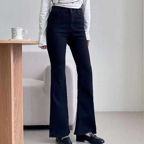 [옷자락] 여자 겨울 기모블랙진 반하이 부츠컷 세미슬림 청바지