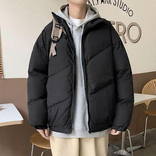 [에이치플러스몰]베이직 패딩 블랙 데일리 스타일 P03 코디