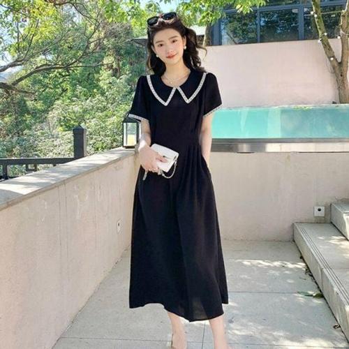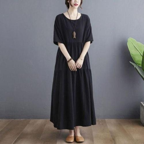 LYF 가성비 린넨 원피스 여름 롱 블랙 루즈핏 반팔