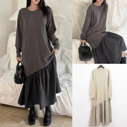 루어스룸 플레인 루즈핏 라운드넥 하객룩 임부복 긴팔 빅사이즈 니트 롱 원피스