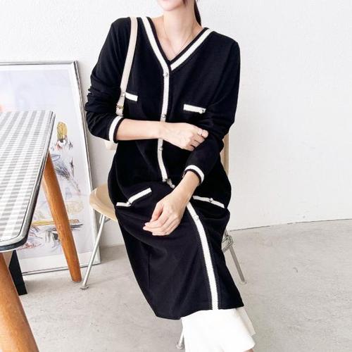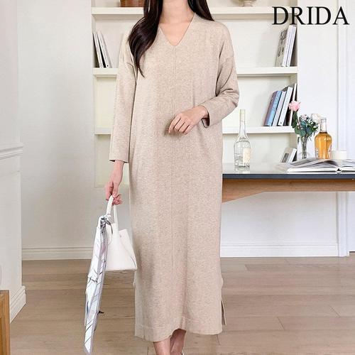 [드리다]여성 봄 가을 브이넥 비스코스 빅사이즈 니트 롱 원피스 캐주얼 출근 등원 모임 하객