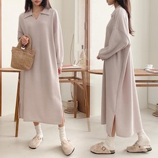 [옷자락] 여자 겨울홈웨어 빅사이즈 옆트임 골지니트 롱원피스