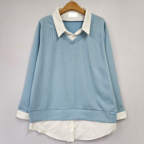 나야홍 / 빅사이즈 503 베이글셔츠배색카라티 DOLT779