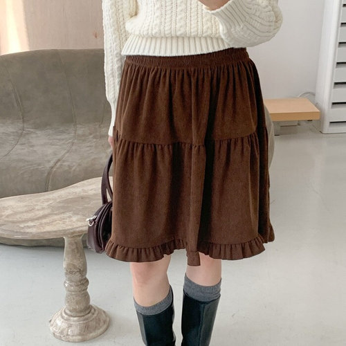 [옷자락]여자 코듀로이 프릴 캉캉 플레어 빅사이즈 겨울 스커트