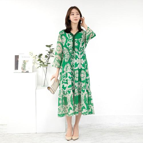 새로본 857봄상품 린넨 나염쉬폰 간절기여름빅사이즈 미디롱원피스 여성OPS 여자면반팔긴팔