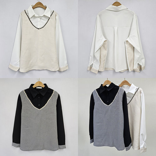 나야홍 / 위쉬몰 GO 오픈카라배색탑블라우스(V136H509) 빅사이