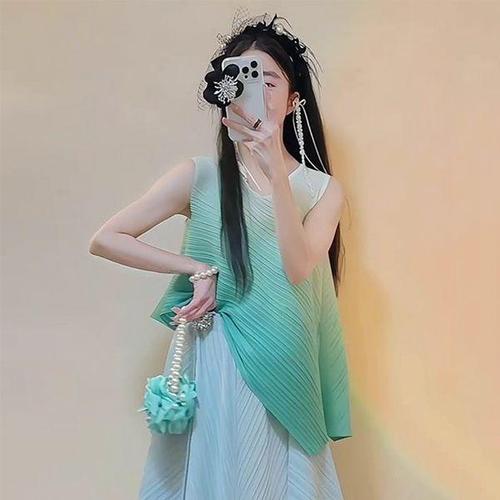 [무드무드]그라데이션 언발 민소매 플리츠 블라우스