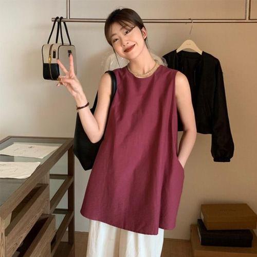 TEMU 대상 여성용 단일 줄 버튼 없는 민소매 셔츠