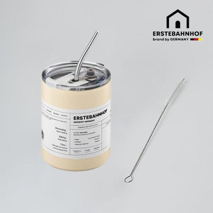 에스테반호프 빨대 스텐 텀블러 350ml 크림 커피 캠핑 보온보냉 진공 스트로우텀블러