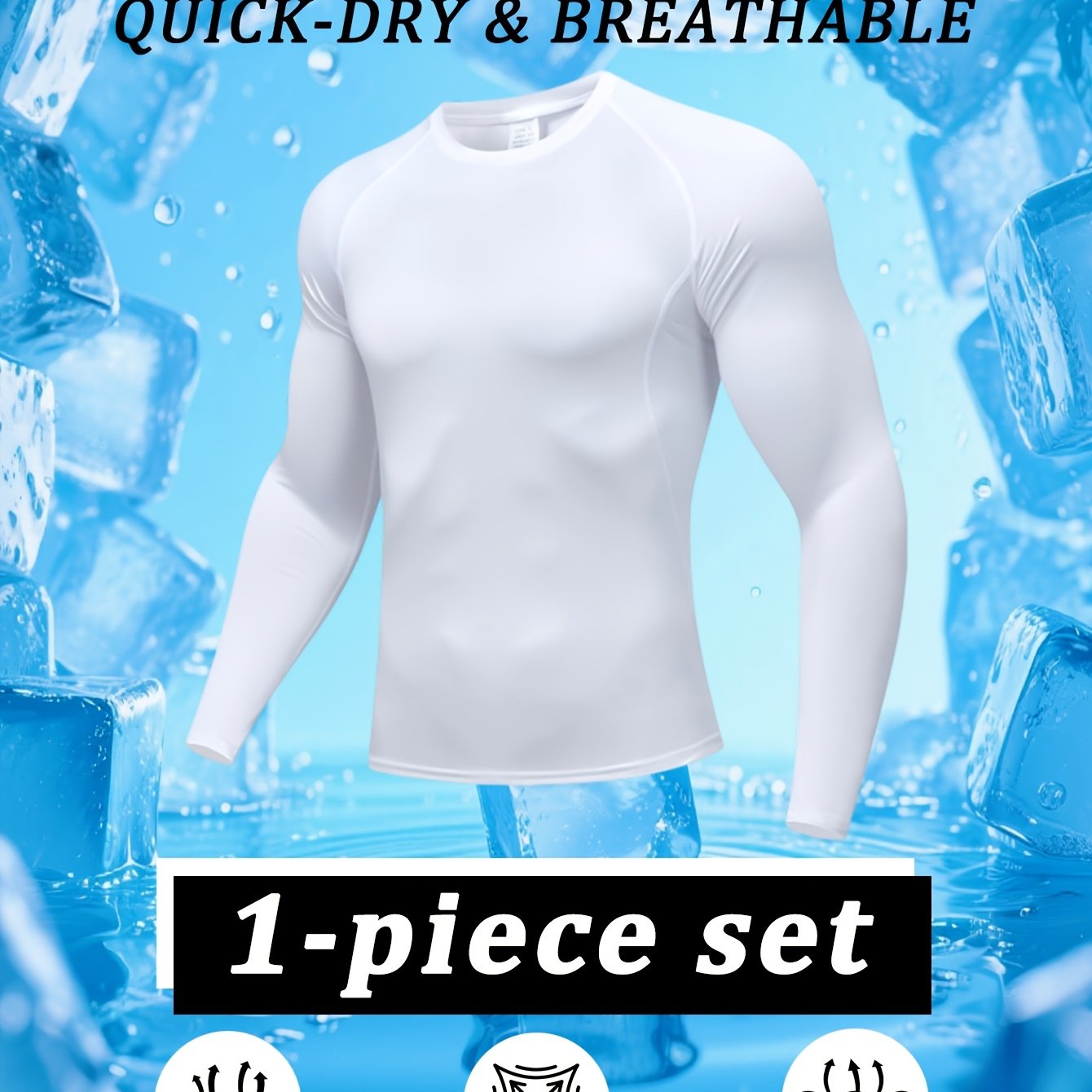 TEMU 남성용 퀵 드라이 컴프레션 긴팔 티셔츠 - 통기성 좋고 신축성이 뛰어난 스포츠 탑, 헬스, 러닝 및 야외 활동에 적합, 가볍고 흡습성이 뛰어나 연중 훈련에 적합
