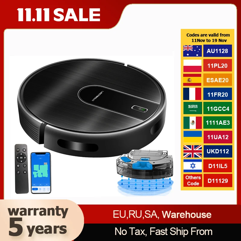 로봇 청소기 LIECTROUX N7S-U, 건식 및 습식 걸레질 콤보, 스마트 매핑, WiFi 앱, 6KPa 흡입, 브러시리스 모터, Alexa 및 Google 어시스턴트와 함께 작동, 애완 동물 털, 카펫, 단단한 바닥에 이상적