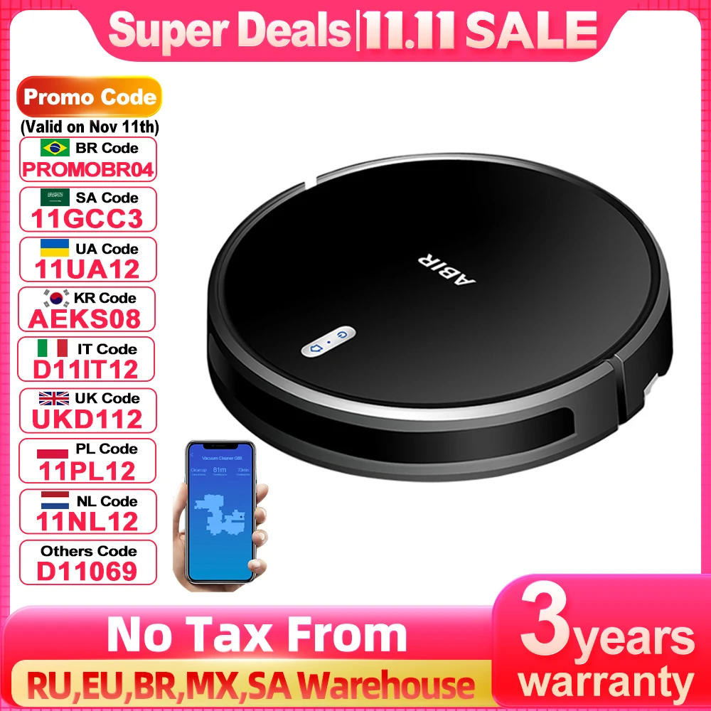 로봇 청소기 ABIR G20S, AI 지도 탐색, 슈퍼 스마트 파티션, 메모리 포함, WiFi 앱 및 음성 제어, 6000Pa 강력한 흡입, 스마트 물걸레질, V자형 메인 브러시, 애완동물 털 보호복, 집 바닥 및 카페트 청소, 소독, Alexa 및 Google 어시스턴트와 함께 작동