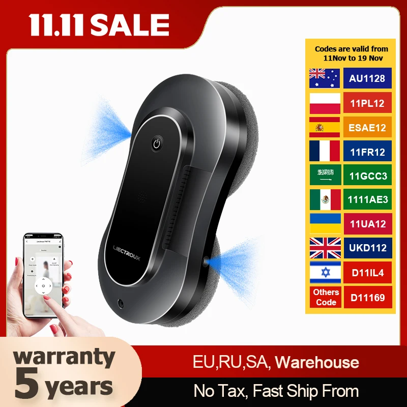 (프로모션 코드: AEWD55)로봇 창문 청소기 Liectroux YW810, 양방향 물 분사, 초박형, 창문 용 로봇 청소기, 가정용 전기 유리 와셔 및 와이퍼, 브러시리스 모터, APP 및 원격 제어,스마트 메모리, 앱 제어