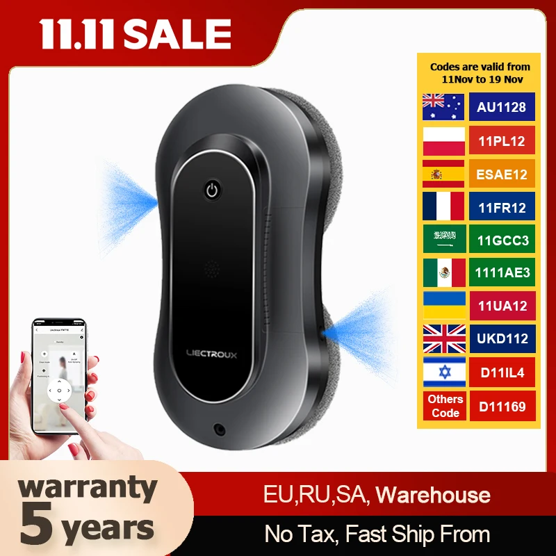 로봇 창문 청소기 Liectroux YW810, 양방향 물 분사, 초박형, 창문 용 로봇 청소기, 가정용 전기 유리 와셔 및 와이퍼, 건식 및 습식 걸레질, AI 경로, 브러시리스 모터, APP 및 원격 제어, 4 중 보안 보호