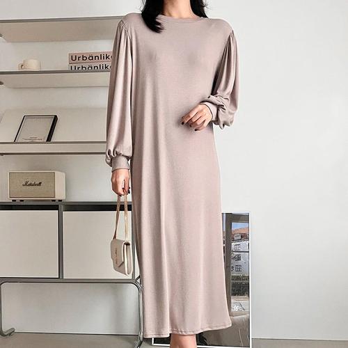 비비에모 모달 라운드 롱 라인 통기성 셔링 원피스 06725