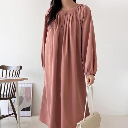 [옷자락] 여자 봄임부복 셔링 버튼 라운드넥 나그랑 빅 롱원피스