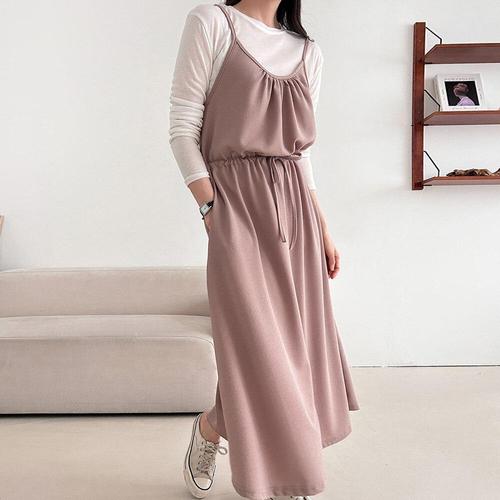 [옷자락] 여자 봄 데일리룩 허리끈 셔링 끈나시 맥시 롱원피스