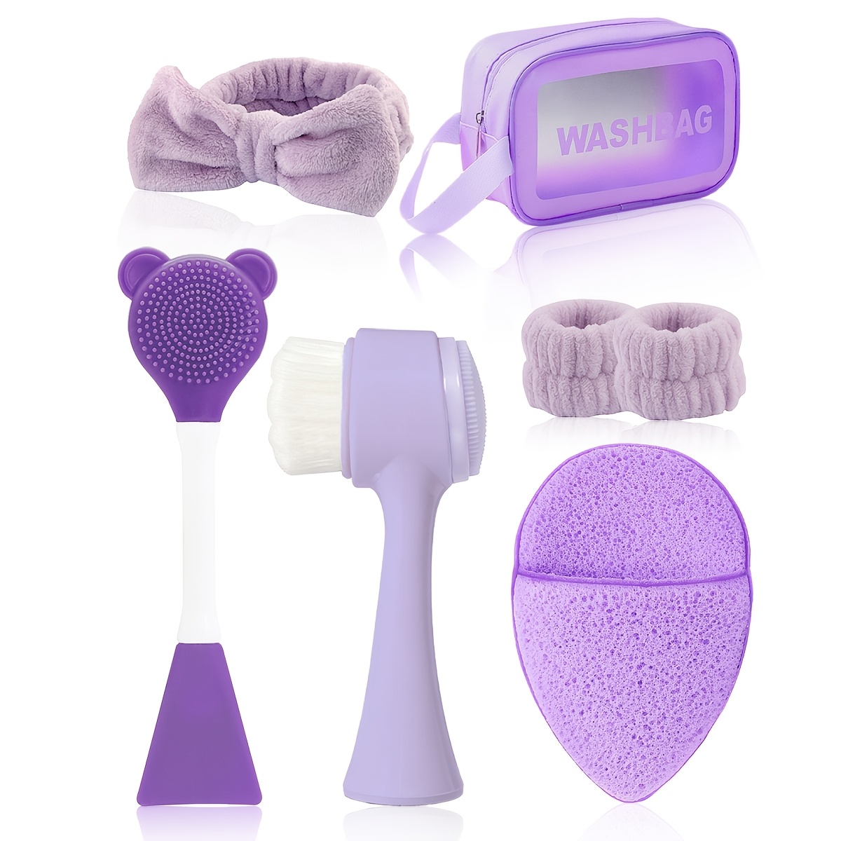 TEMU 7pcs 페이셜 클렌징 뷰티 스파 도구 세트, 부드러운 딥 클렌징 및 각질 제거 브러쉬 및 마스크 브러쉬 세트, 부드러운 벨벳 헤어밴드 및 헤어 타이 세트, 실리콘 디테일 클렌징 브러쉬, 보관 가방 포함, 여성에게 이상적인 선물