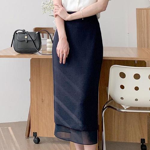 [하프클럽/셀러허브_여성트랜드패션]망사 쉬폰 롱 샤스커트 치마