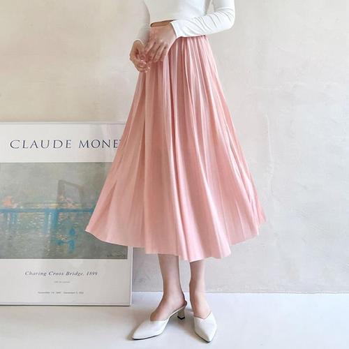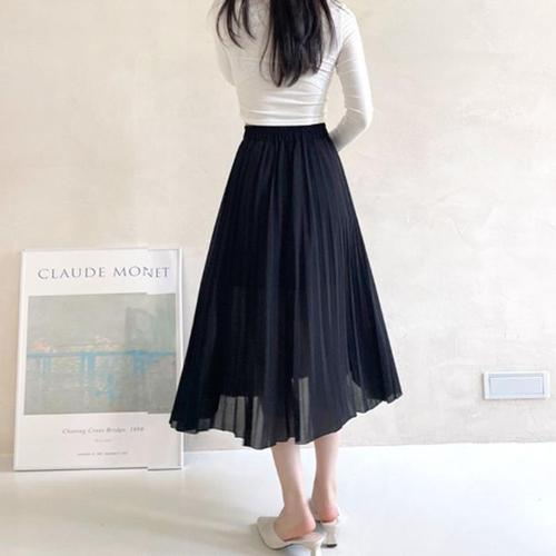[라일리의류] Rly 쉬폰 주름 하늘하늘 플리츠 미디 밴딩 스커트 치마