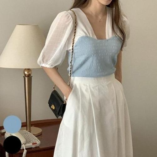 [다잇템]여성 원컬러 시폰 빅사이즈 스트랩 셔츠