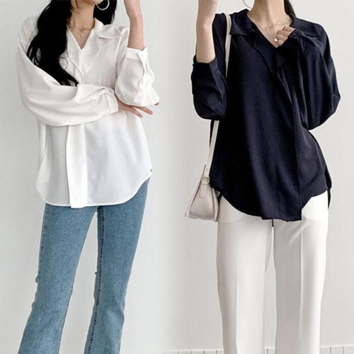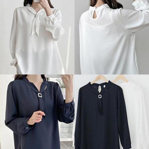 데일로엔 여성 심플 카라넥 긴팔 셔츠 블라우스