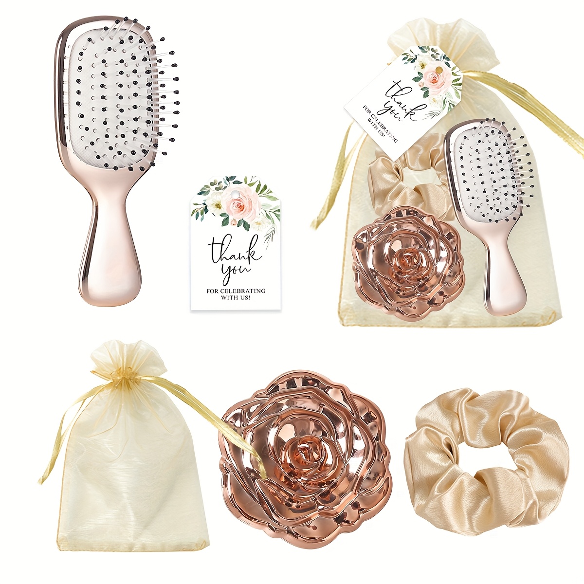 TEMU 30개/5개 선물 세트: 전기도금 장미 플립탑 휴대용 접이식 거울, 사각 미니 빗, 머리끈, 감사 카드, 끈 달린 선물 가방 – 크리스마스, 할로윈, 결혼식, 파티, 생일, 축하 행사에 이상적