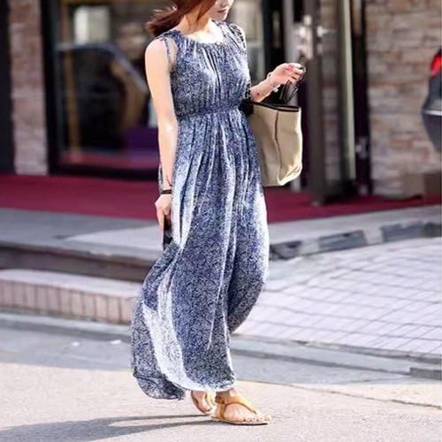 나시 휴양지 롱 어깨 원피스 리본 여자 스모크 민소매 WFLOZQV