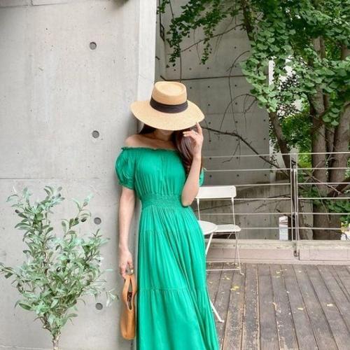 원피스 롱 밴딩 오프숄더 스모크 WD54900