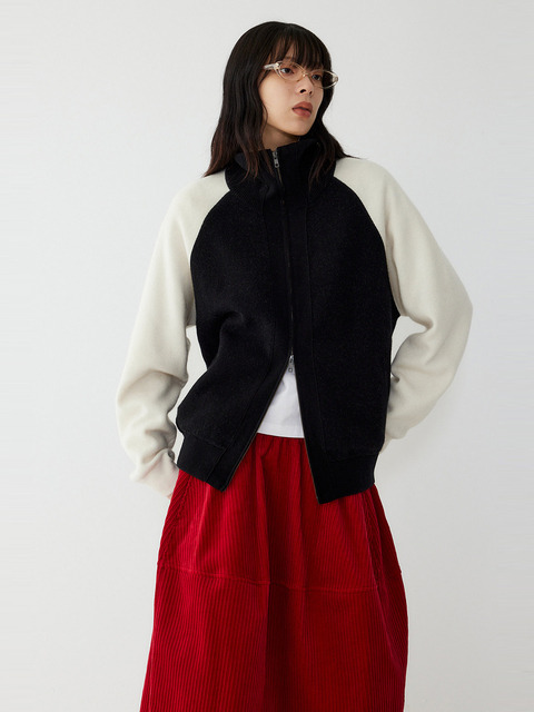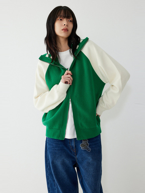[스튜디오 톰보이] 빅카라 컬러블럭 집업가디건_카키 9105151104