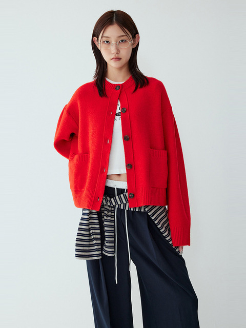 [스튜디오 톰보이] [리오더] 배색포인트 라운드넥 가디건 _레드 9175451981