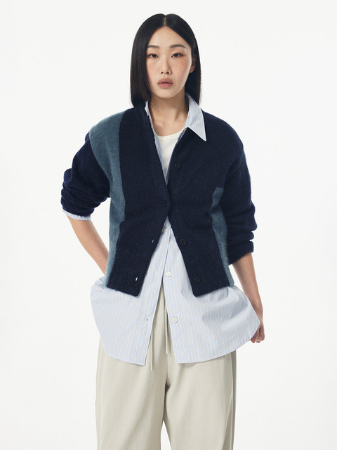 [스튜디오 톰보이] Y카라 컬러블럭 가디건_네이비 91U5151006