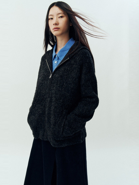 [스튜디오 톰보이] 헤어리 집업 포인트 후디 가디건_챠콜 9105451112