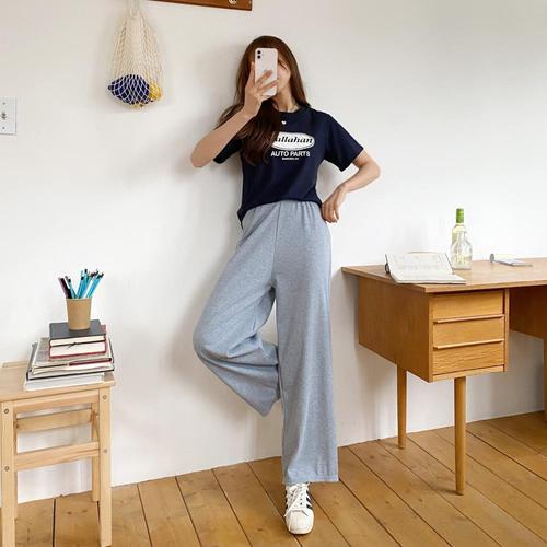 [신상오픈런]딧멜로 잔골지 스트레이트 바지 여성 스프링 밴딩 와이드팬츠 스트레치