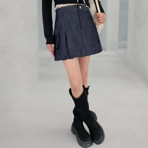 [옷자락] 여성 키치 무드 면 스판 포켓 청 미니 스커트