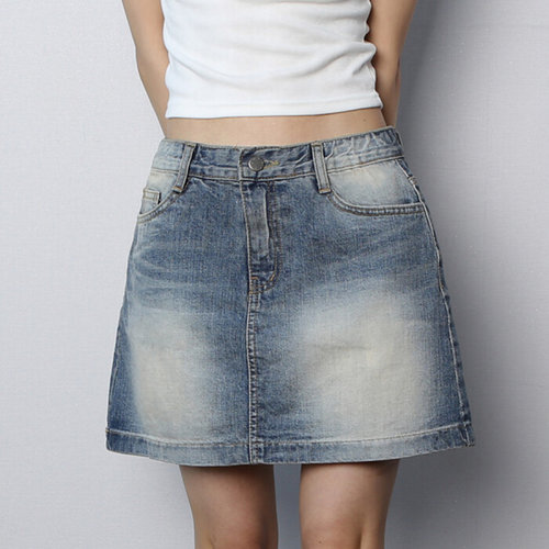 가비진 여성용 대박 쫀쫀 스판 데님 워싱 h라인 청치마 미니스커트 치마