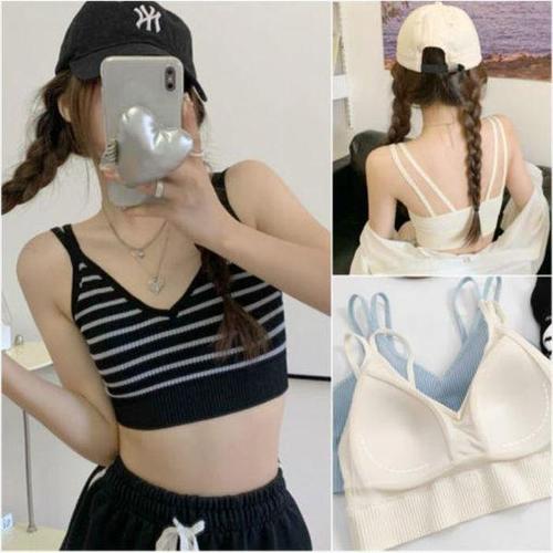 [에이치플러스몰]두줄 인기 끈 티셔츠 크롭 감성 캡나시 이너 브라렛